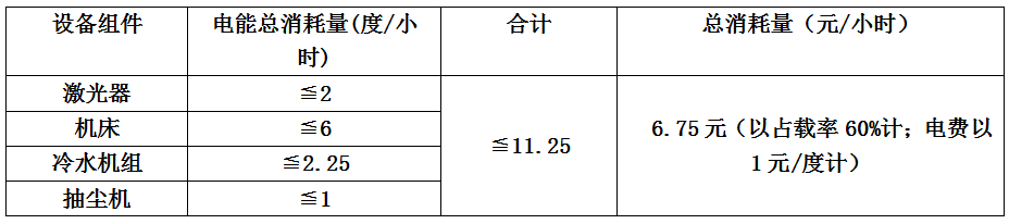 6、光纤激光切割机每小时总计消耗费用:(使用空气切割)